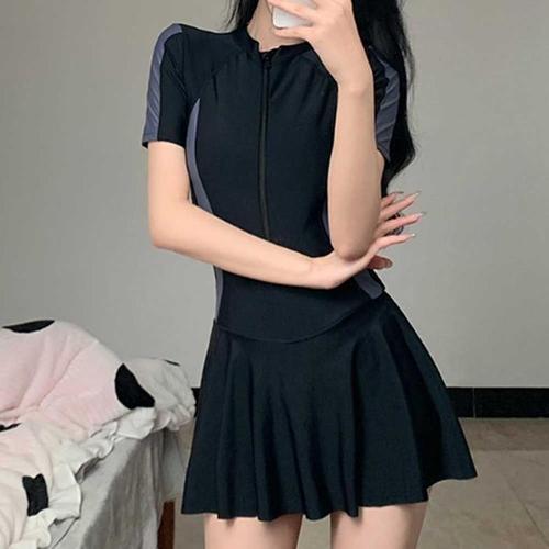 [JHN65PPR_53DR]블랙 여성래시가드 원피스 스커트 수영복