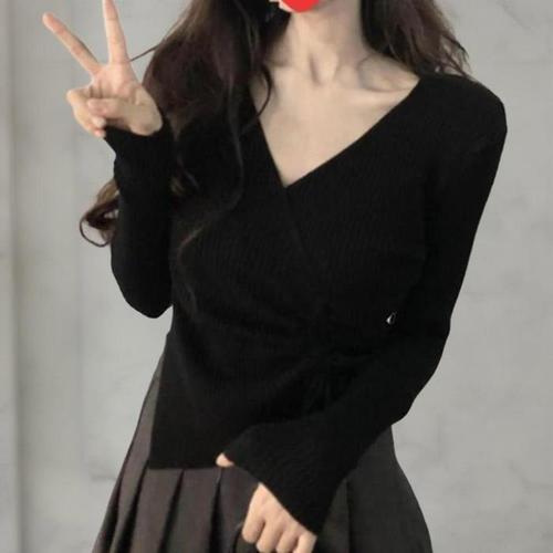 [다잇템]여성 끈 랩 편한 사랑스러운 V넥 골지 니트 (41935735A)