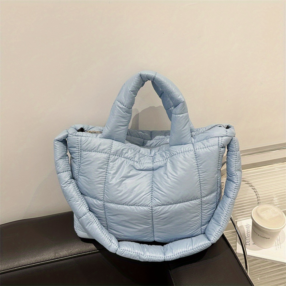 TEMU 여성용 퍼퍼 토트 핸드백 솔리드 컬러 퀼트 숄더백 여성 출퇴근용 가방