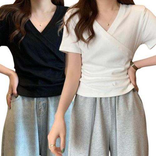 [셀러허브_여성트랜드패션]ONM 여성용 랩 브이넥 반팔 티셔츠