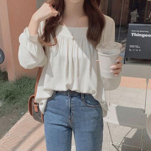 [굿쇼핑몰_의류]여리여리 러블리 스퀘어넥 셔링 긴팔 블라우스