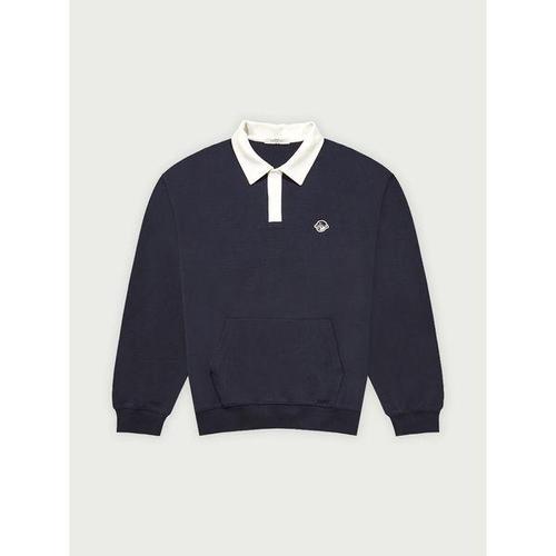 플러리싱 / 오버핏 단가라 펜던트 럭비 단추 카라 맨투맨 플러리