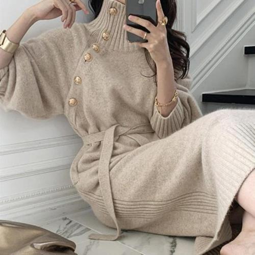 여성 럭셔리원피스 가을 컴포트 캐주얼 폴라 긴팔 트렌치 원피스 ADOR3