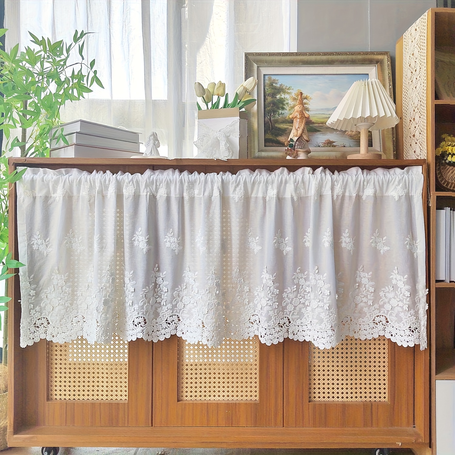 TEMU 1개, 프렌치 라이트 럭셔리 엠보싱 꽃 자수 레이스 짧은 커튼, 화이트 우아한 커피 커튼, 주방, 거실, 작은 창문 홈 데코레이션에 적합, 주방 커튼, 창문용 짧은 흰색 주방 커튼, 스타일리시 카페 커튼, 커튼, 창문용 짧은 커튼