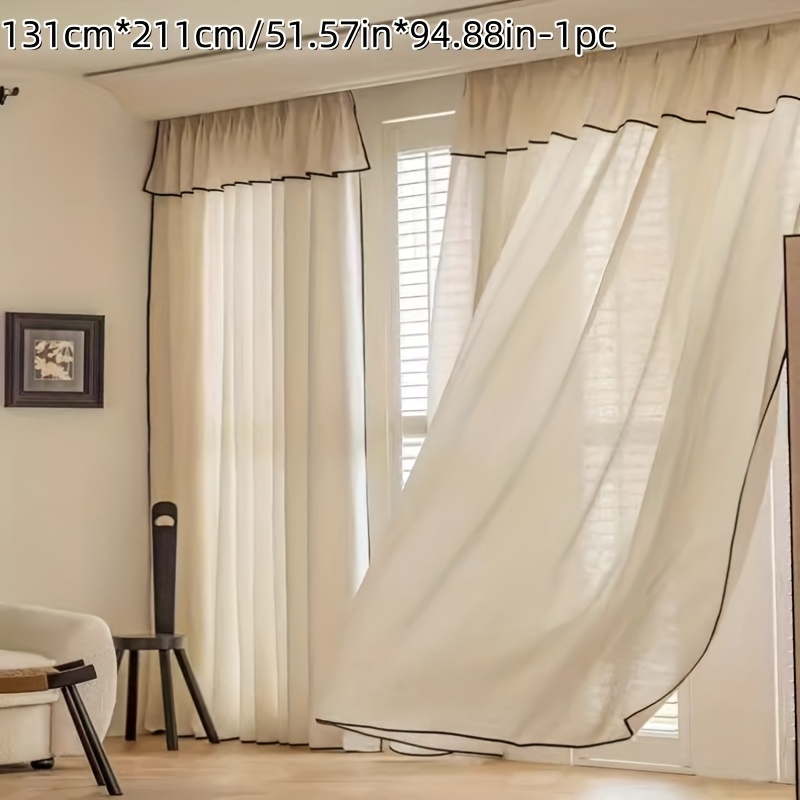 TEMU 1개 프렌치 스타일 린넨 쉬어 커튼, 블랙 트림, 빈티지 라이트 럭셔리 디자인, 탑 훅 앤 타이 디자인, 다양한 걸이 방법을 위한 후크와 링 포함, 모든 커튼봉과 트랙에 적합, 침실, 거실, 발코니, 식당, 베이 창, 홈 데코용