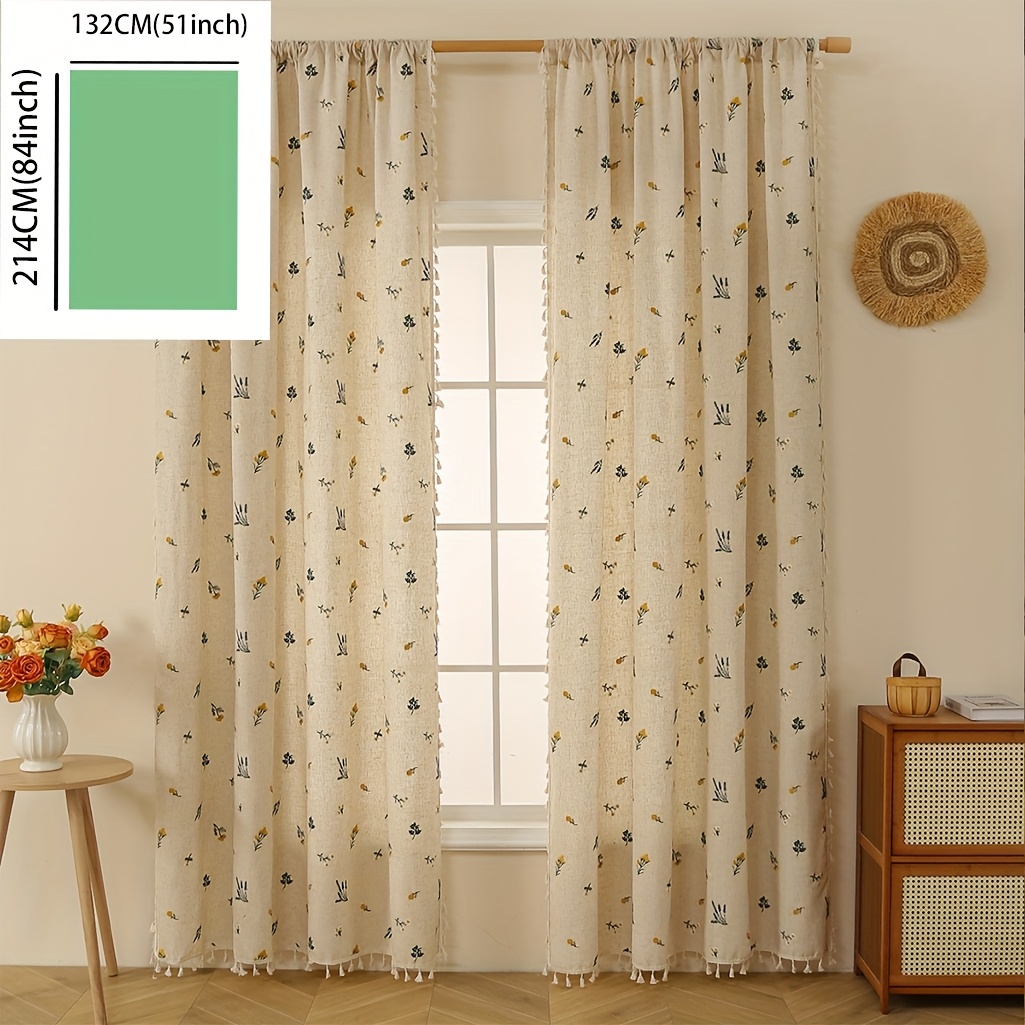 TEMU 1패널 레트로 럭셔리 자카드 플로럴 시스루 커튼, 로드 포켓 디자인, 거실·침실·발코니·주방 실내 장식용