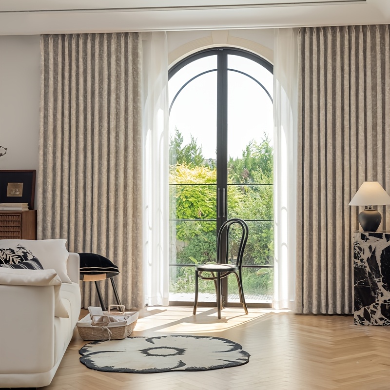 TEMU 1개 프렌치 라이트 럭셔리 크림 쉐닐 자카드 커튼 - 부드럽고 매끄러운 터치, 폴리에스터, 그로멋 탑, 안감 없음, 사계절 장식용 창문 커튼, 거실, 침실, 유리문용, 후크 및 백 버클 포함, 거실 커튼, 침실 커튼, 창문 커튼