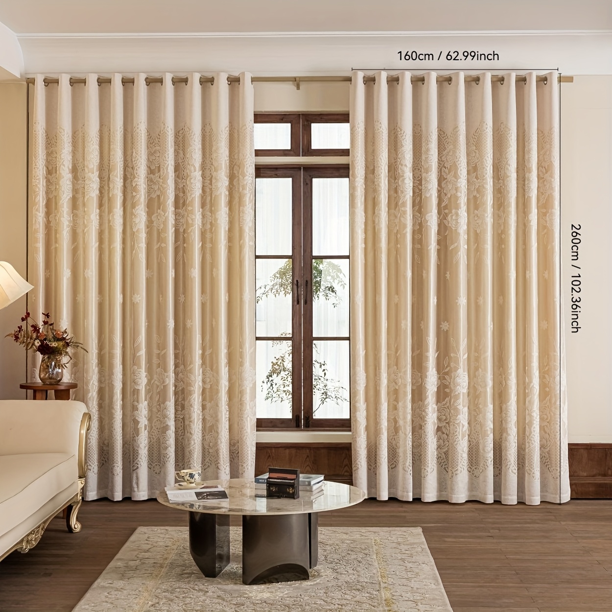 TEMU 1개 플로럴 엠보싱 자수 이중 레이어 완성 커튼, 거실 및 침실, 홈 오피스, 미국 스타일, 프랑스 스타일, 뉴 차이나 스타일 및 라이트 럭셔리 스타일에 적합.