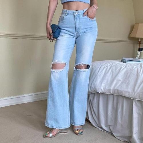 [신상오픈런]|KHP6945|민띵크 라이트블루 바지 청 데미지 부츠컷 여성 워시드 썸머_18173578_597559