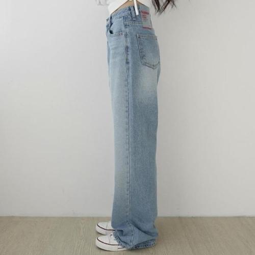 [신상오픈런]|KSP56A2|트피안 여성 레트로 라이트블루 넓은 구제 데님팬츠_18173310_597559