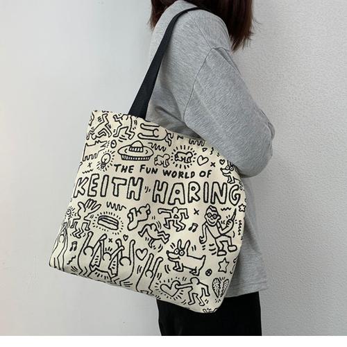 키스해링 에코백 대용량 숄더백 캔버스 학생 가방 (WFFNMFO)