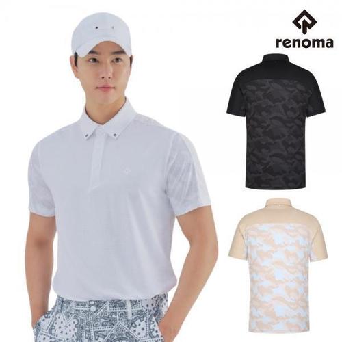 [레노마골프]레노마골프 남성 골프 여름 캐주얼 등판 카모 패턴 메쉬 티셔츠 TYM 2116. CA3614963