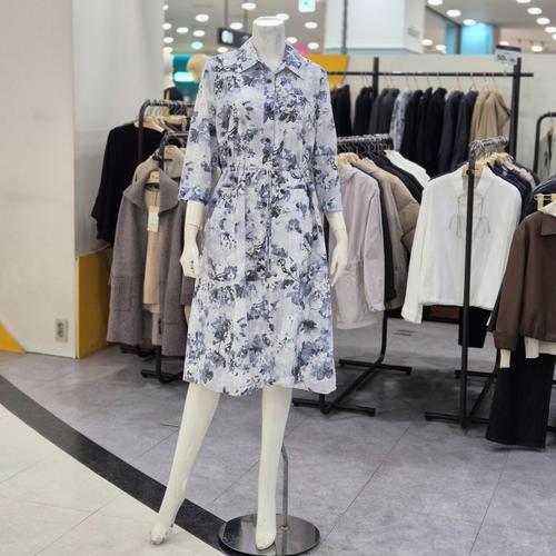TEMU [프린트 원피스 - 데님 원단 아님] 시크하고 편안하며 사려 깊은 여성 데님 스타일 프린트 원피스 - 크루넥, 긴소매, 테일러드, 바디콘, 간편한 디자인, 출퇴근에 이상적