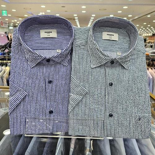 [레노마셔츠]반소매 서커 스트라이프 일반 셔츠 RNUSG1434_JJ