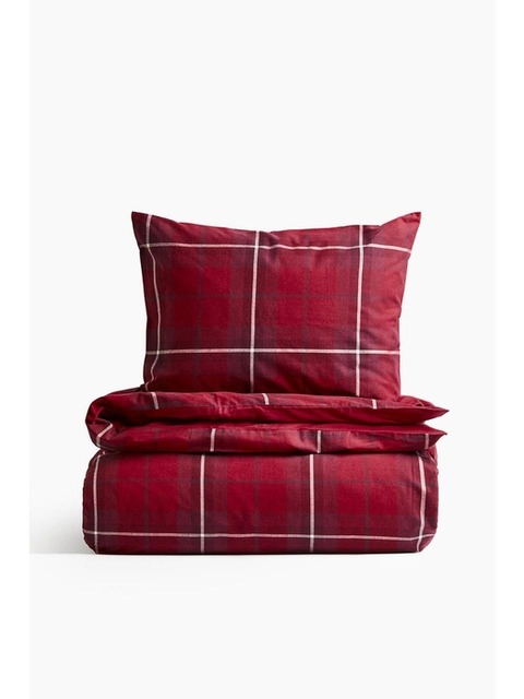 [에이치엔엠] 싱글 플란넬 이불커버 세트 레드/체크 1233231005