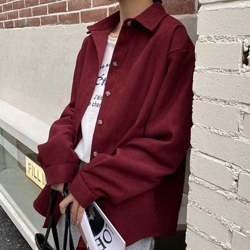[에이치플러스몰]여성 골덴 긴팔 셔츠 레드 기본 카라 가벼운 아우터