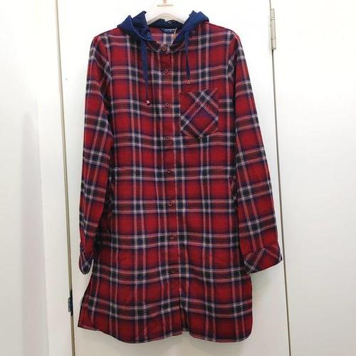 [올포유]가을 여성 체크 후드탈착 아우터형 블라우스 (레드,청록) ALBLN8131