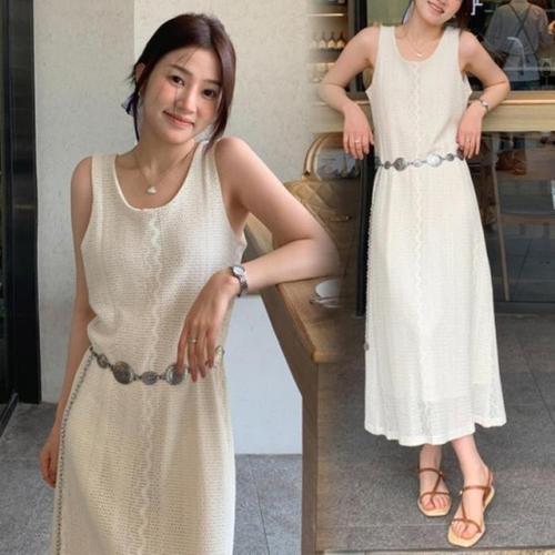 [오너클랜]인기상품 여성용 니트 롱 원피스 나시 레이스 펀칭 드레스 [WFLLKUK_260305]