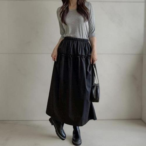 [다잇템][다잇템] 여성 롱 원컬러 프릴 후레아 고무줄 치마_23563415_588872