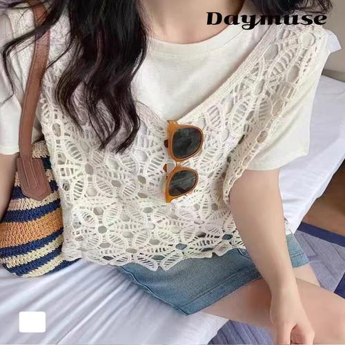 [셀럽하우스]브이넥 ZMAV7898 펀칭 레이스 셔링 니트 조끼 캐주얼 베스트