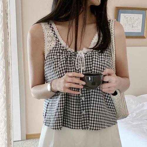 [다잇템]여자 SS 리본 귀여운 레이스 고방체크 뷔스티에 (15250525A)
