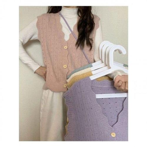 [셀럽하우스]셔링 JRUS7890 7컬러 니트조끼 여자 펀칭레이스 물결 브이넥