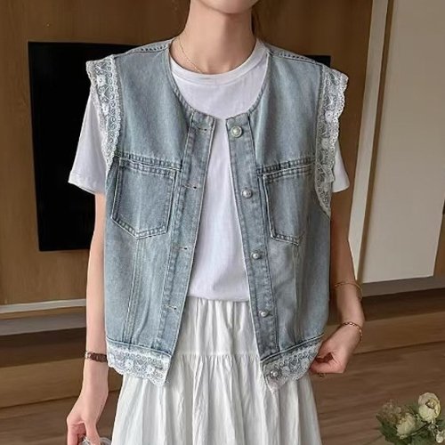 코코에보니VE-111 빅사이즈여성조끼 레이스가디건 여름조끼 입으면자동코디룩완성