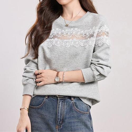 [다잇템]여성 코튼 키치 무드 빅사이즈 레이스 맨투맨