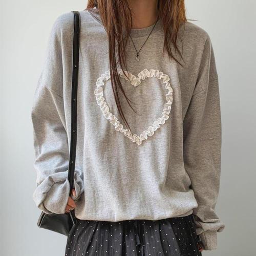 [옷자락]여성 키치 무드 레이스 하트 루즈핏 면 혼합 맨투맨