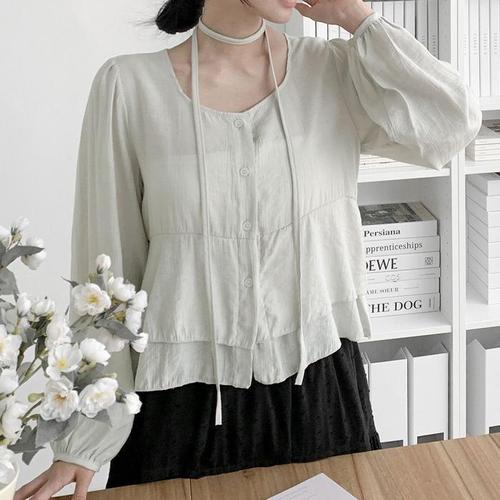[다잇템]여자 프릴 단추 벌룬 FW 티어드 블라우스 (40949019A)