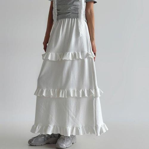 [다잇템]여자 프릴 시즌리스 클래식 티어드 롱스커트