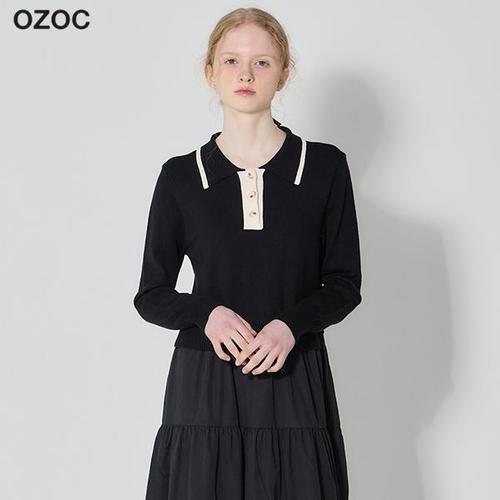 [오조크(OZOC)] 카라 배색 니트 티어드 원피스 (택가격: 142000원)