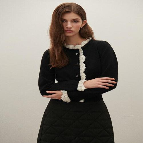 [샤틴]배색 레이스 하트버튼 니트 가디건/S254B959