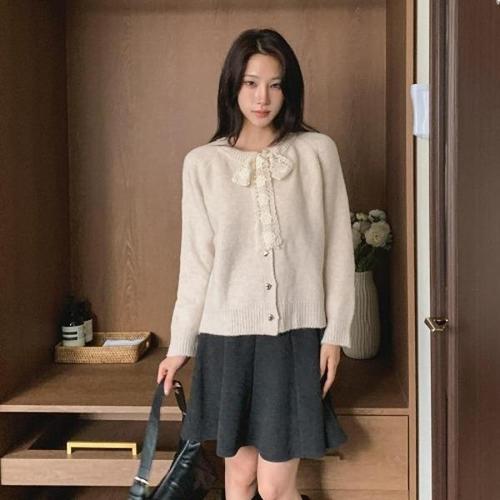 [다잇템][다잇템] 여성 스웨터 리본 레이스 울 귀여운 가디건_23540844_588872