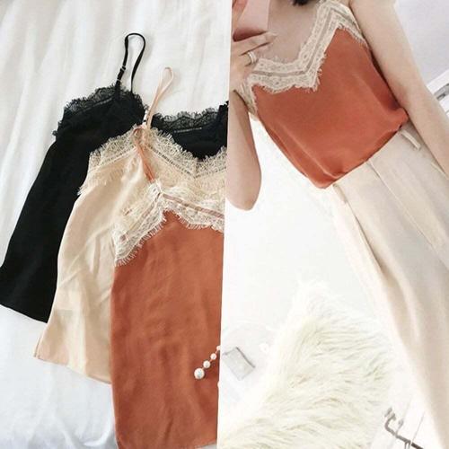 실크 레이스 나시 - 슬립 캐미솔 끈나시 민소매 이너