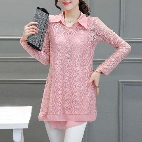 [셀럽하우스]시스루레이스블라우스 JXYJ1515 브이넥민소매 레이어드원피스