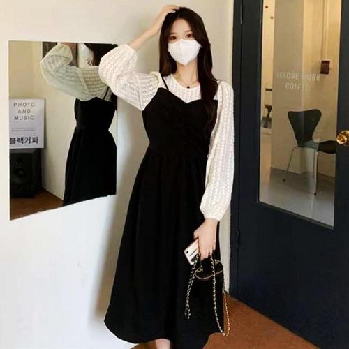 [셀럽하우스]레이스 MBXG2127 블라우스 나시 레이어드 원피스