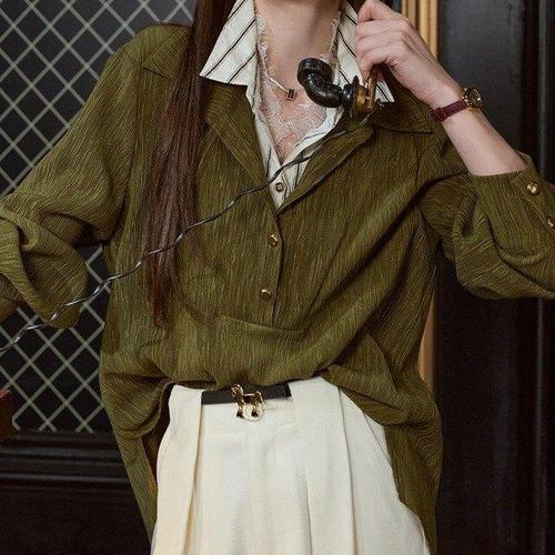 [에이치플러스몰]여성 레이스 레이어드 블라우스 빅카라 셔츠