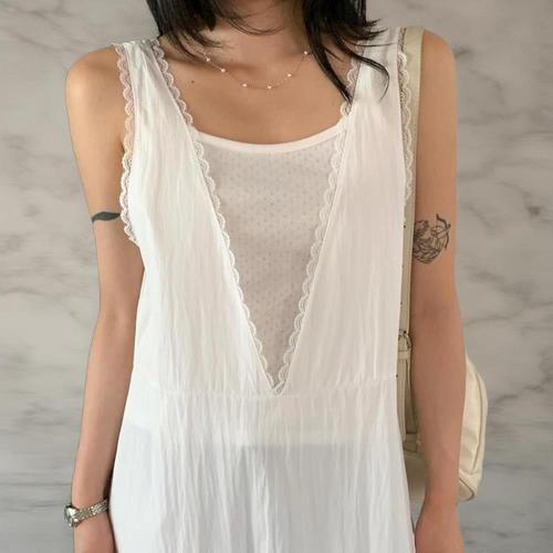 데일리앤 허그 레이어드 프릴 레이스 롱나시 민소매티