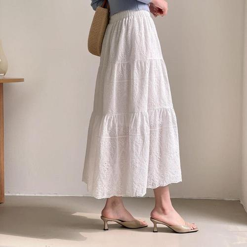 데일리앤 사빈 아일렛 펀칭 레이스 프릴 캉캉 롱스커트 여름 치마
