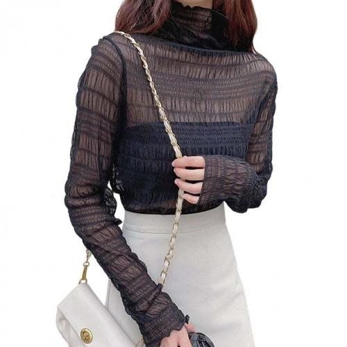 섹시 여성 메쉬 티셔츠 시스루 레이스 블라우스 긴팔 시스루 탑 여성용 이너웨어 셔츠 시어 티셔츠 바디 크롭탑