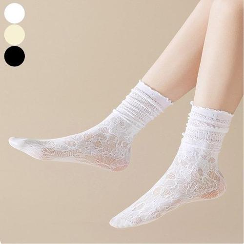 [써니 패션] 얇은 여성 시스루 레이스 여름양말 4개