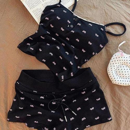 [셀러허브_여성트랜드패션]ONM 여성잠옷 민소매 홈웨어 체리 레이스 밴딩 파자마