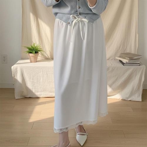 도니와 여성 밴딩플레어 롱스커트 레이스 치마 딜벨ZA58
