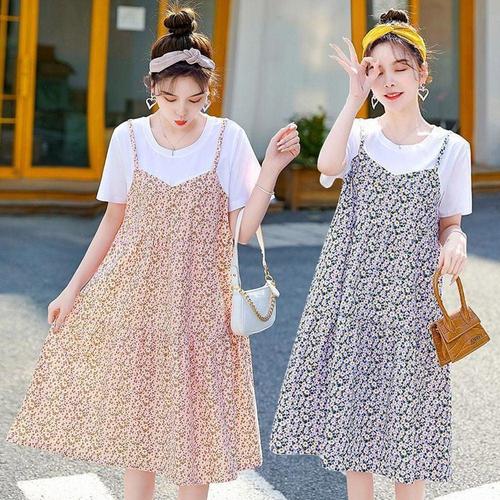 컬러풀 플라워 반팔 나시 레이어드 원피스 URK-361 WF3B0DD