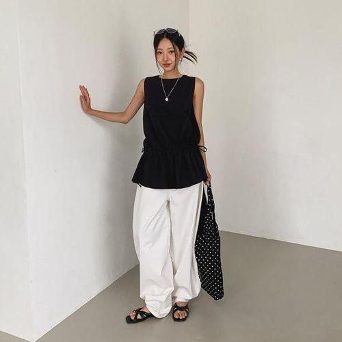 여자 레이어드프릴 슬림핏 끈 스판 루즈핏 나시