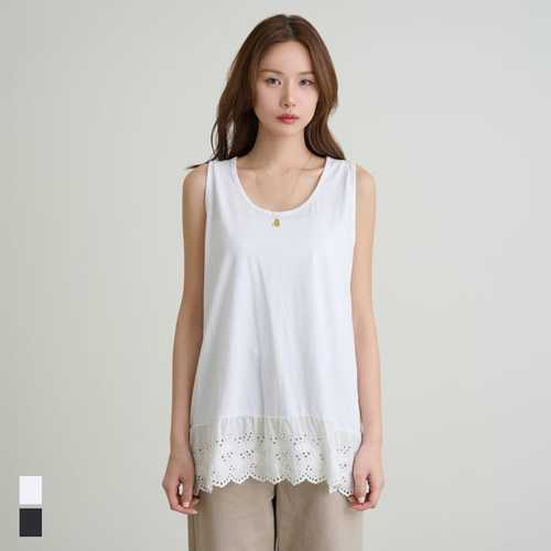 펀칭 레이스 레이어드 나시 티셔츠 (SJT26019)