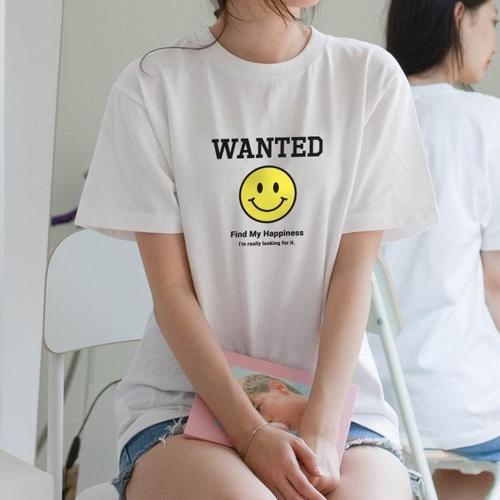 [험블][험블] 스마일 프린팅 레이어드 남녀공용 여름반팔티셔츠 (7298981A)