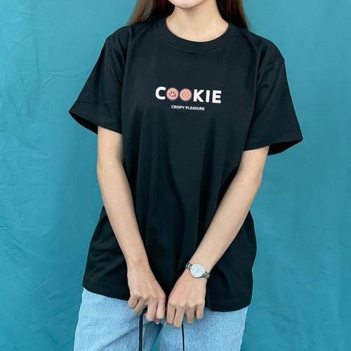 [험블][험블] 쿠키 레터링 남녀공용 라운드 레이어드 반팔티셔츠 (8015580A)