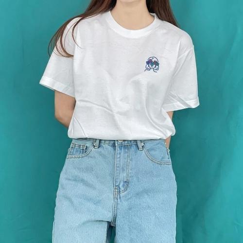 [험블][험블] 데이지 프린팅 라운드 레이어드 오버핏 반팔티셔츠 (8040170A)